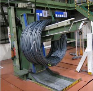 ②線材コイル挿入時および反転時に線材コイルへのキズ防止を